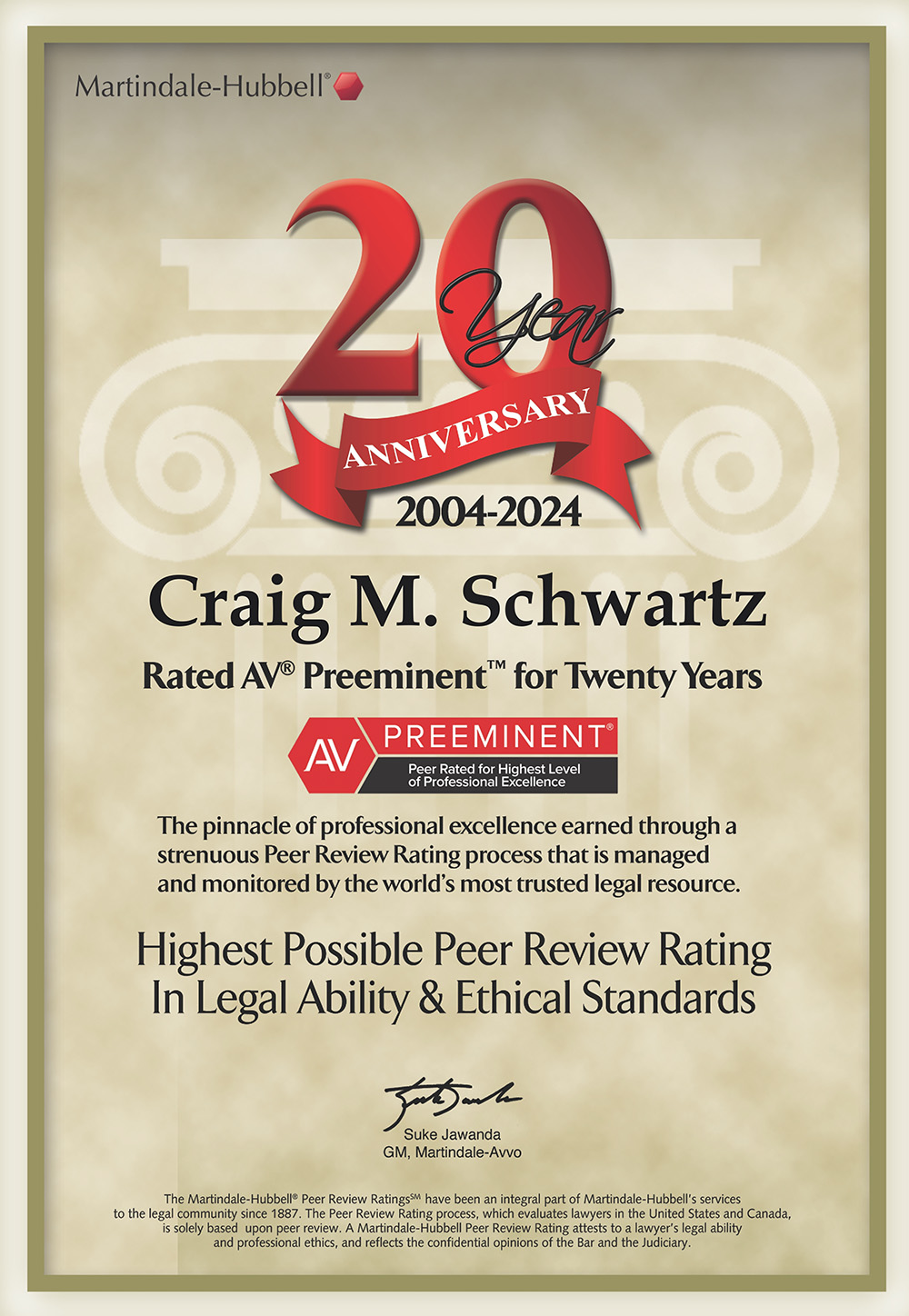 Craig M. Schwartz is an AV Preeminent rated attorney, which is the highest rating given by Martindale-Hubbell, a nationally renowned lawyer rating service, for both his legal ability and ethical standards. Craig has also been selected by the readers of Smart CEO Magazine as one of Baltimore’s Legal Elite top business lawyers. With over 35 years of experience, Craig focuses his client representation on results, helping clients to succeed while protecting their interests in a cost-effective manner. He applies a practical and efficient approach to his work while serving as outside general counsel for a number of privately held successful businesses, and also assisting a wide range of clients in connection with commercial transactions including the purchase and sale of businesses, the sale, acquisition, financing and development of real estate, commercial leasing, and contract matters. Craig handles sophisticated and complex transactions, while also guiding individuals who may be starting a business or purchasing an existing small business for the first time. Craig takes pride in his ongoing, long-term relationships with his clients, many of whom continue to engage him to handle new legal matters as they arise.